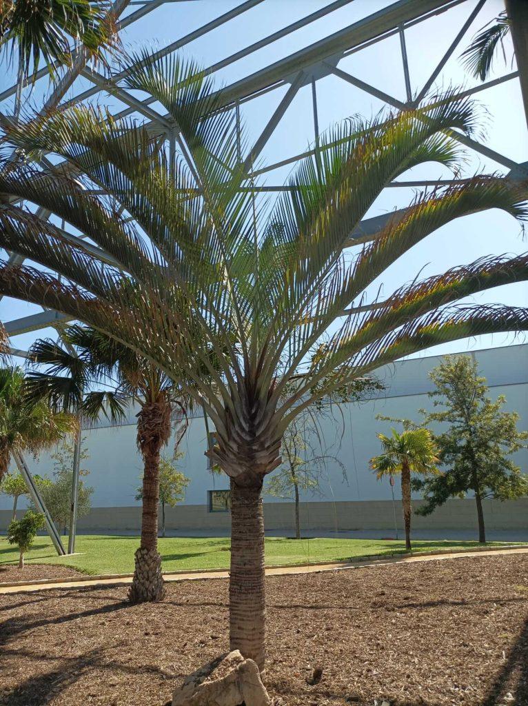 Foto: Palma enana en el Campus en el interior del antiguo hangar. Autor: S. Ríos.