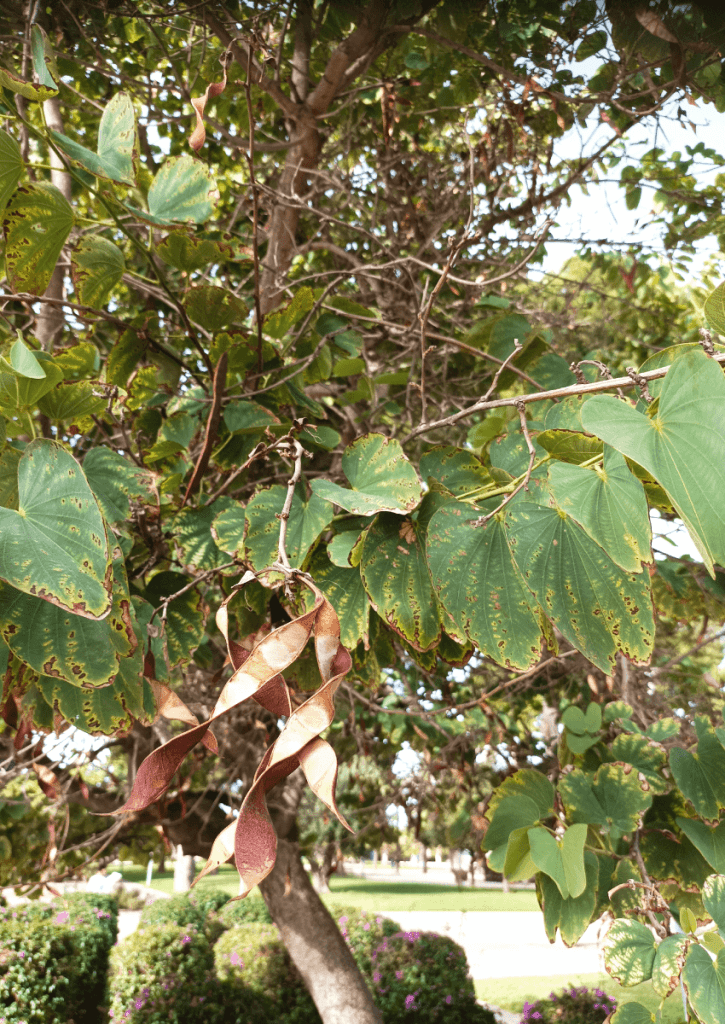 Se trata de uno de los ficus más fáciles de identificar por sus hojas acorazonadas con un largo peciolo y también un acumen alargado en el ápice.