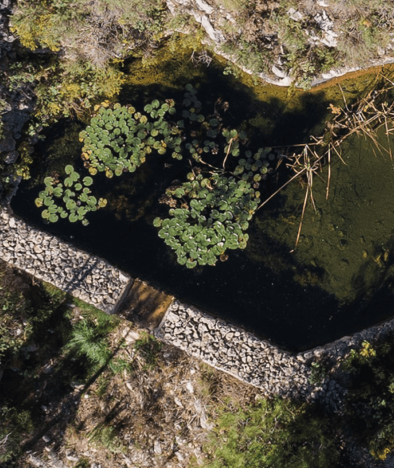 La escasez de recursos hídricos en el sureste ibérico hace que los puntos de agua tengan un valor estratégico para la biodiversidad, por ello mediante la captación y almacenamiento de aguas pluviales de escorrentía en pequeñas acequias, un aljibe, pozas y estanques se diversifican mucho los microhabitats que sirven de refugio para anfibios, insectos acuáticos y en general para toda la fauna.