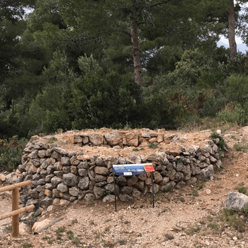 Hornos de cal, majanos o conilleres, covachas de pastor, covacha de melero, pozos de agua (alcabons), muros de piedra seca y muchos otros pequeños elementos de la arquitectura rural. De todos estos restos el horno de cal es el mejor conservado y se ha adecuado a para que los visitantes puedan comprender la dureza del proceso de obtención de la cal viva.